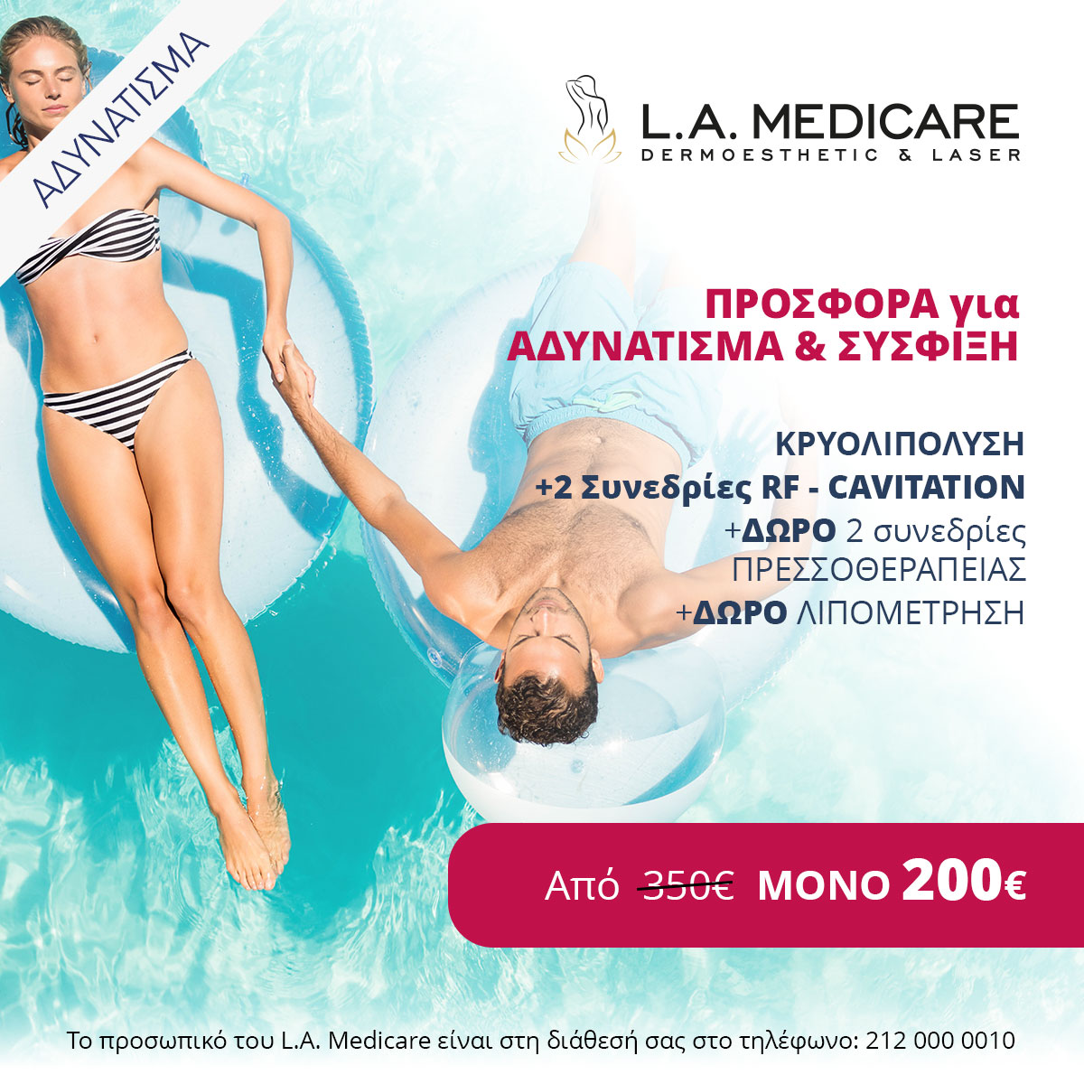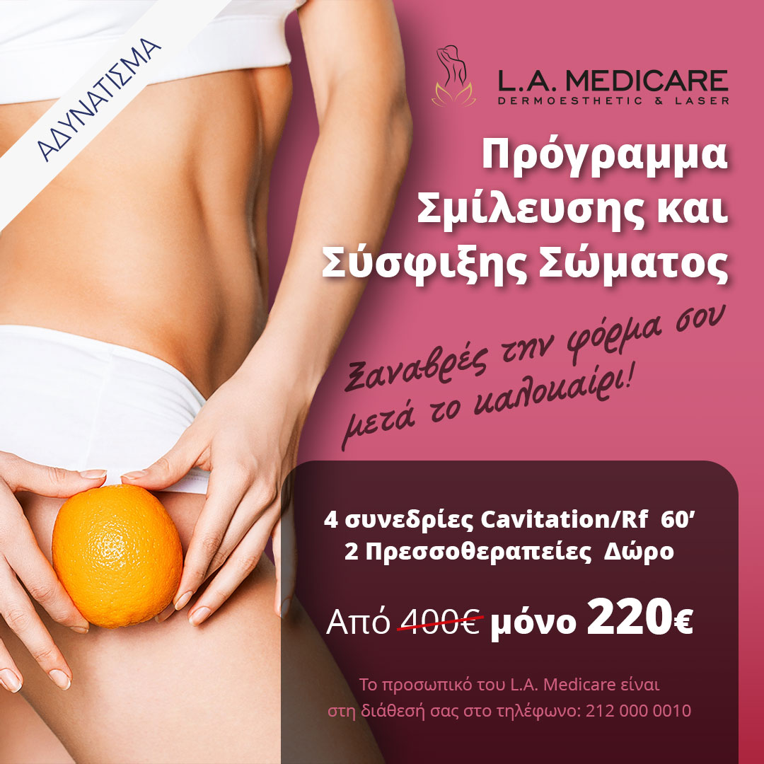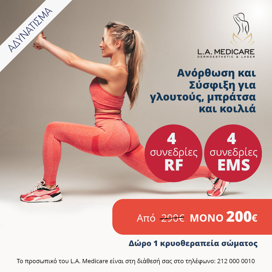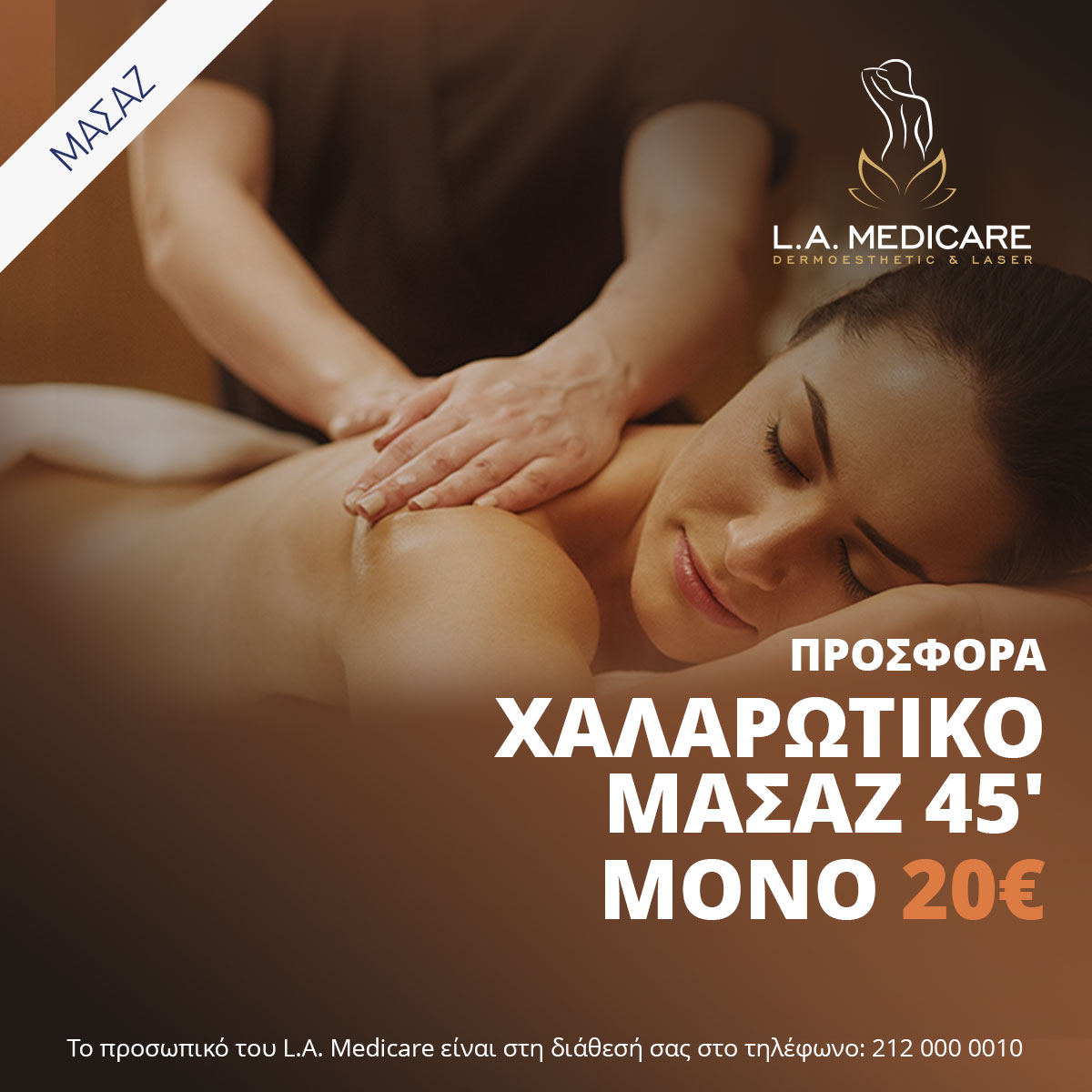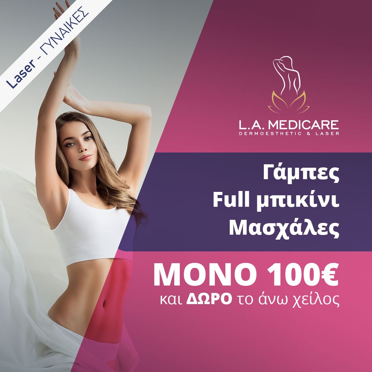 Το L.A. Medicare είναι ένα κέντρο αισθητικής στο Νέο Ηράκλειο που σας υποδέχεται σε ένα ζεστό και ήρεμο χώρο. Σε εμάς θα βρείτε εξατομικευμένα θεραπευτικά πρωτόκολλα με άμεσα ορατά αποτελέσματα μέσω εγκεκριμένων, πιστοποιημένων και σύγχρονων μηχανημάτων και προϊόντων. Το έμπειρο και καταρτισμένο προσωπικό είναι στην διάθεσή σας να σας καθοδηγήσει στοχευμένα για να επιλέξετε την κατάλληλη θεραπεία για να επιτύχετε τα βέλτιστα αποτελέσματα σε πρόσωπο και σώμα.