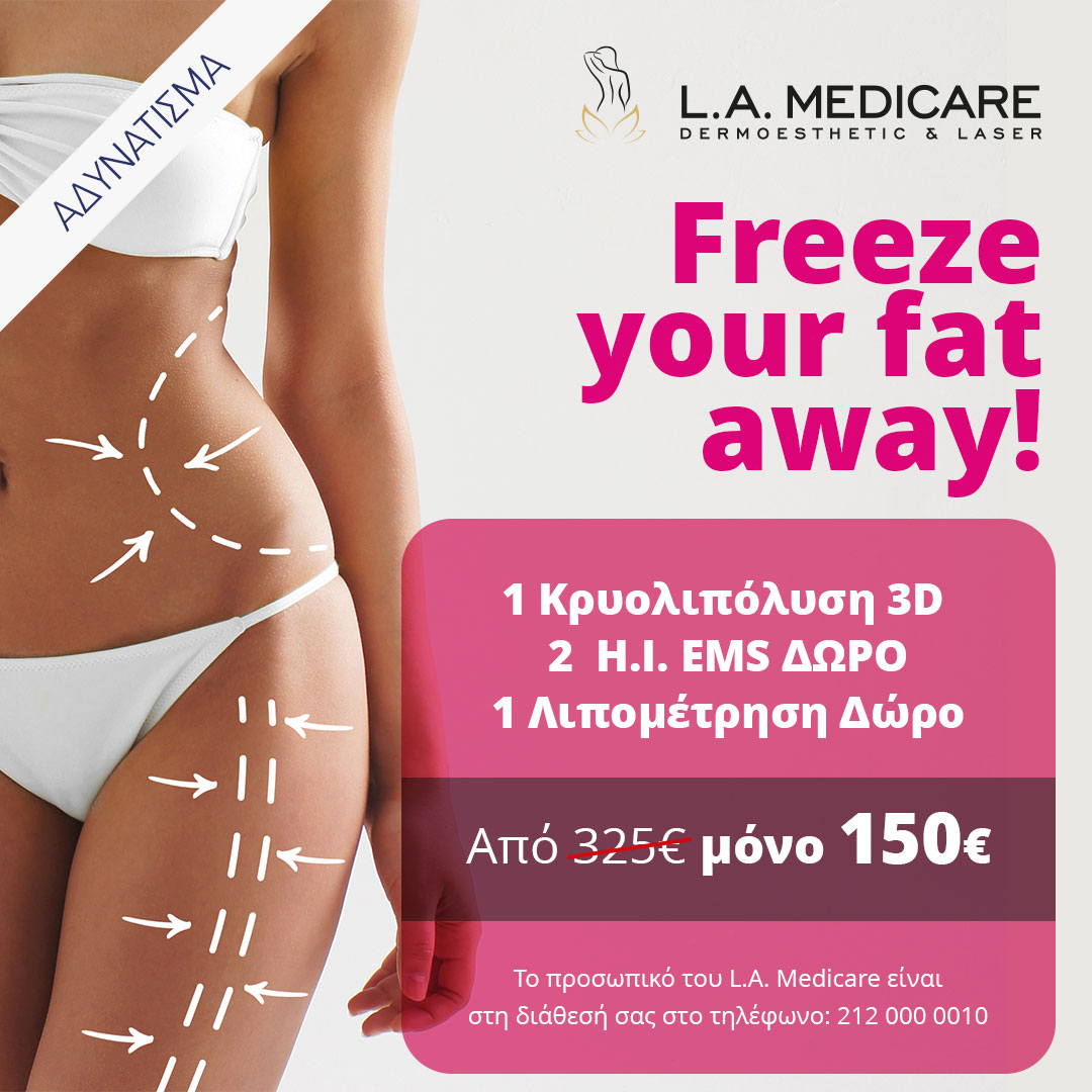 Το μηχάνημα της κρυολιπόλυσης που διαθέτουμε είναι 3D με πολύ μεγάλη απόδοση στην μείωση του τοπικού λίπους και 4 κεφαλών που μας δίνει την δυνατότητα τοποθέτησής τους σε ταυτόχρονα διαφορετικά σημεία εφ’ όσον χρειάζεται.