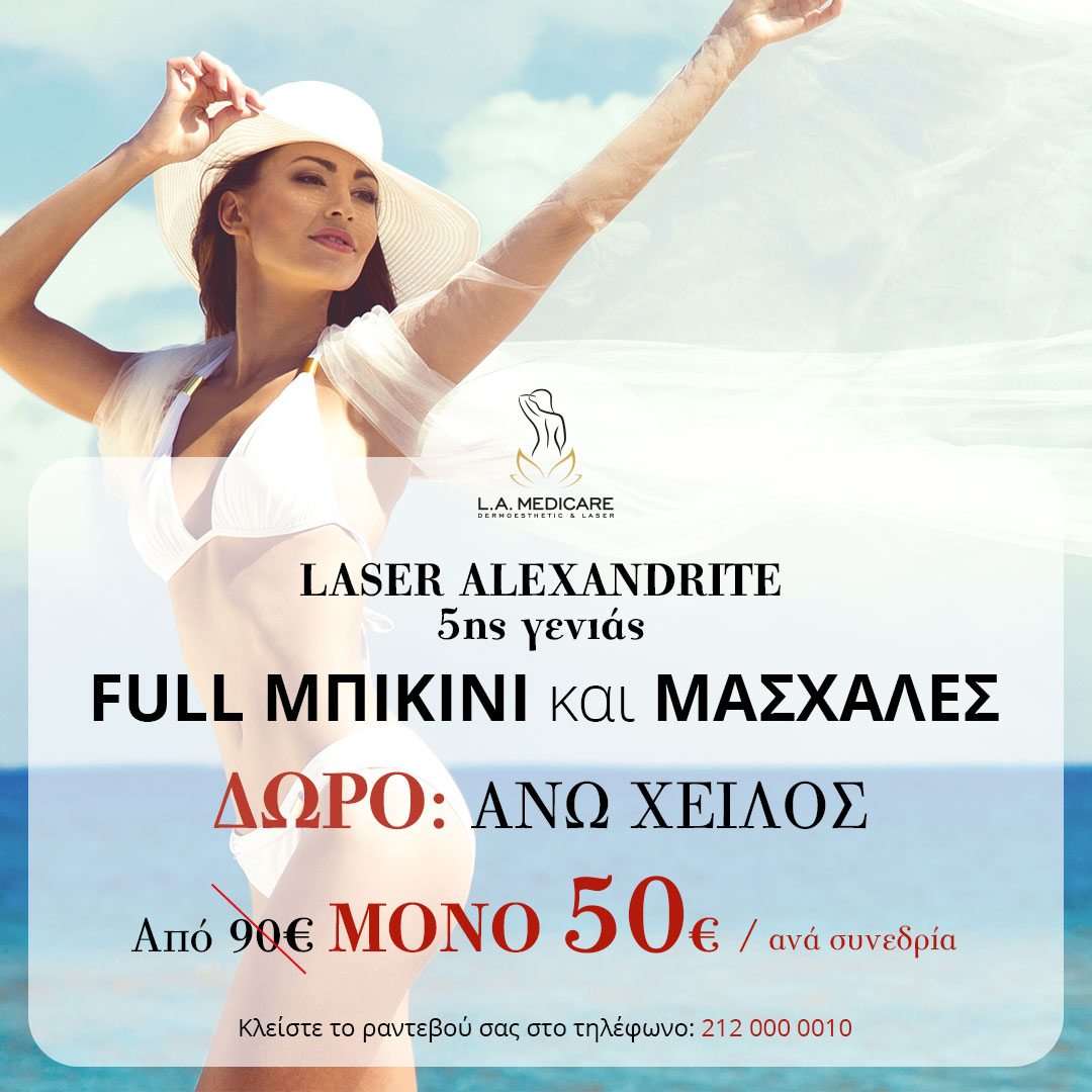 Με το laser triple alexandrite (συνδυασμός alexandrite, ND-Yank και diode) συνεχίζουμε το laser και τους καλοκαιρινούς μήνες και σε μαυρισμένα δέρματα, ενώ συγχρόνως καταπολεμά και τις ξανθές τρίχες και το χνούδι.